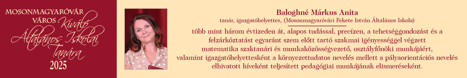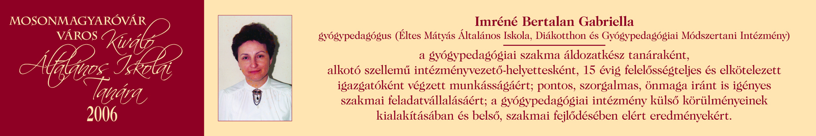 MOSONMAGYARÓVÁR VÁROS KIVÁLÓ ÁLTALÁNOS ISKOLAI TANÁRA