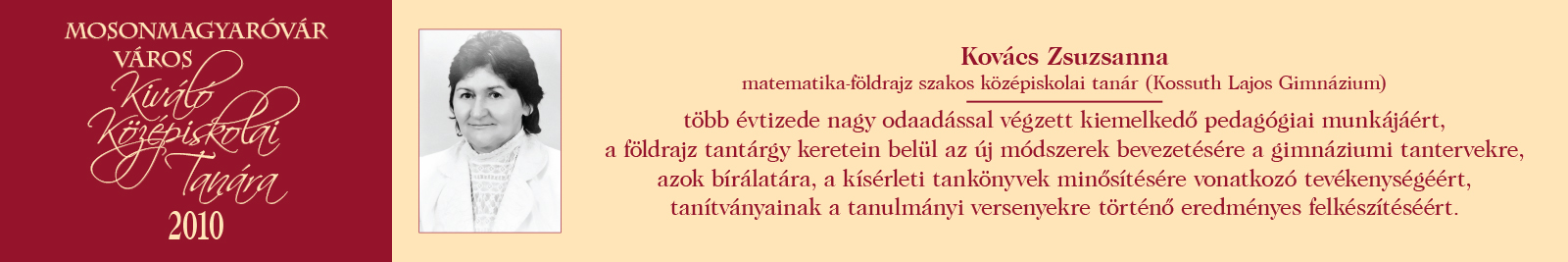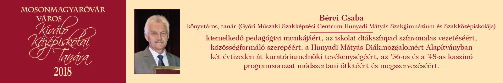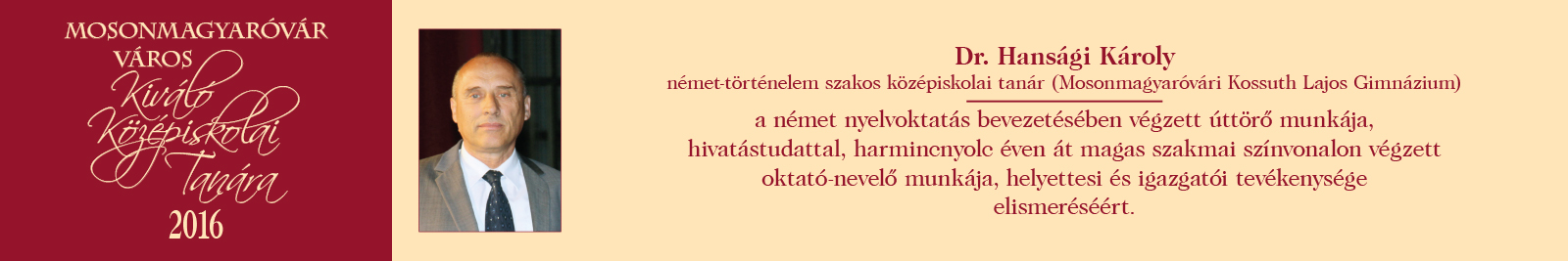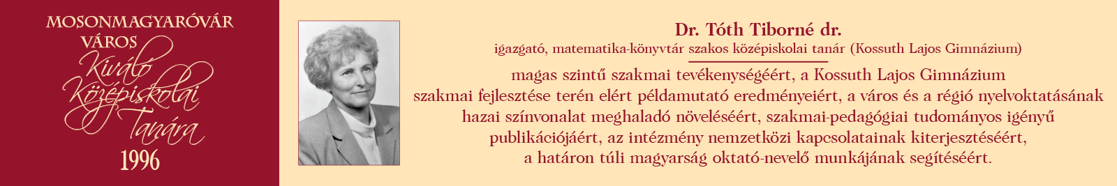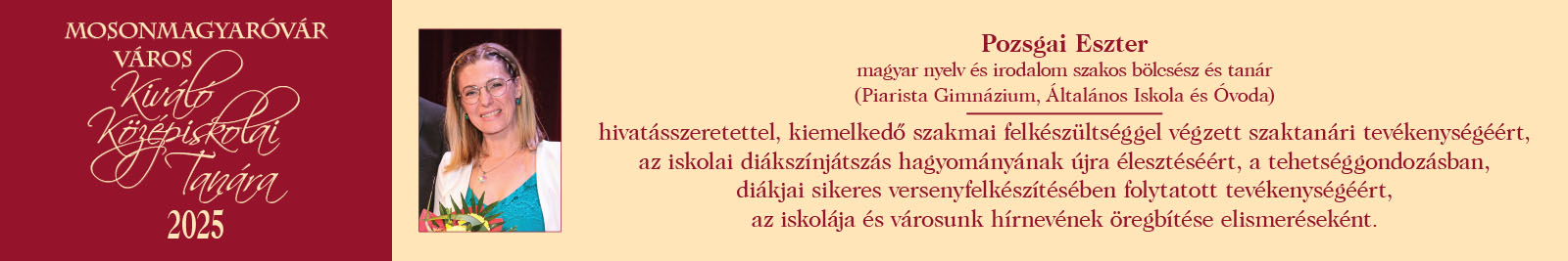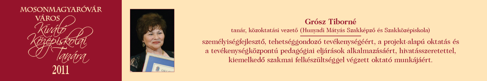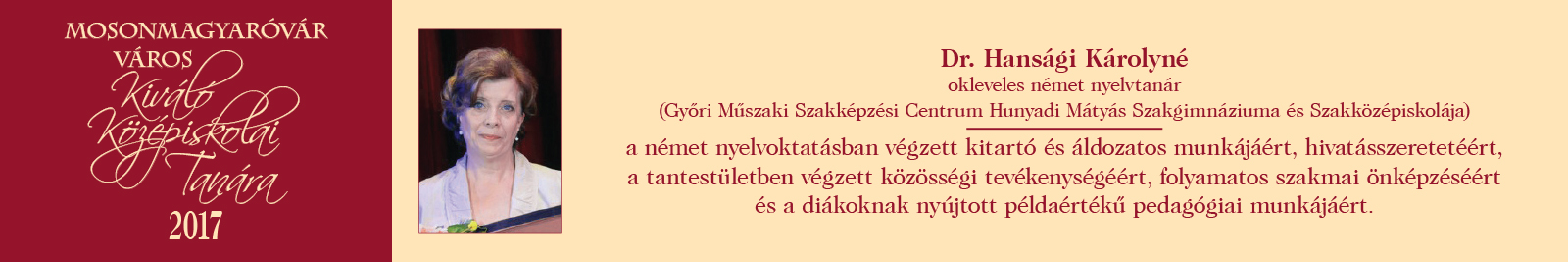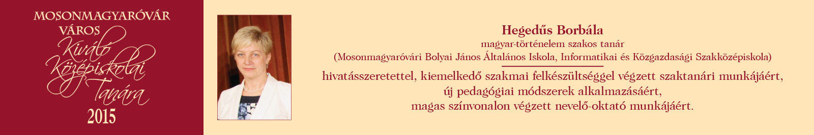 MOSONMAGYARÓVÁR VÁROS KIVÁLÓ KÖZÉPISKOLAI TANÁRA