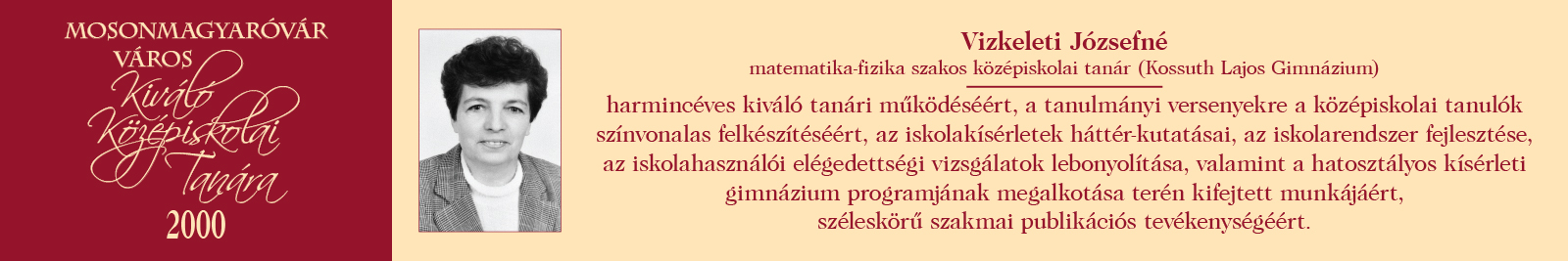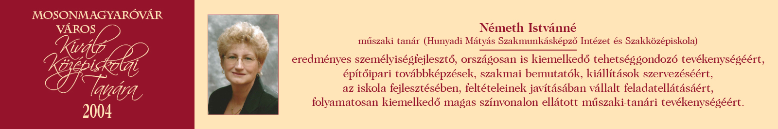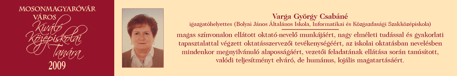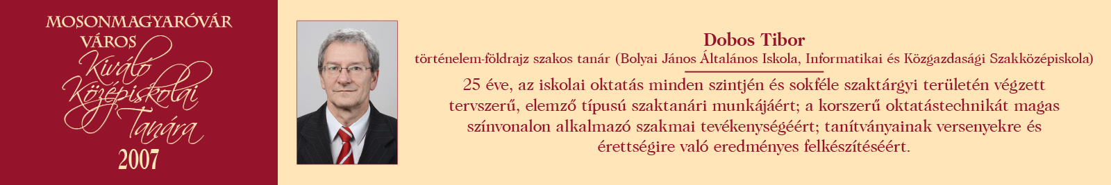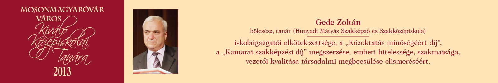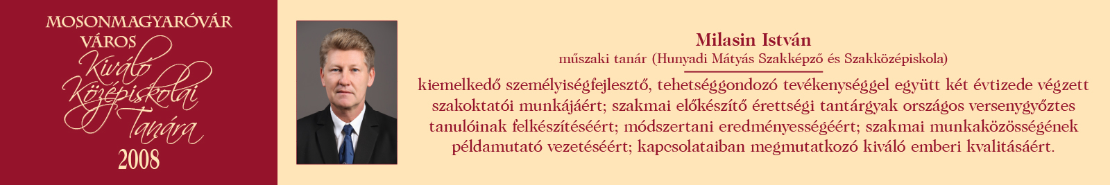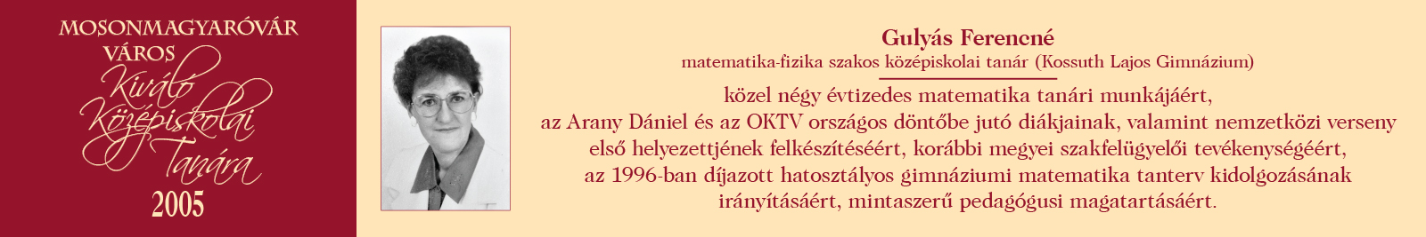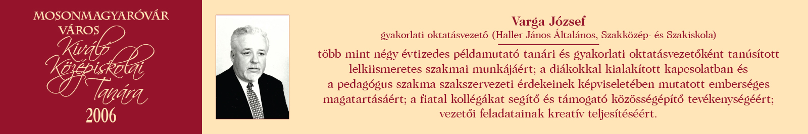 MOSONMAGYARÓVÁR VÁROS KIVÁLÓ KÖZÉPISKOLAI TANÁRA