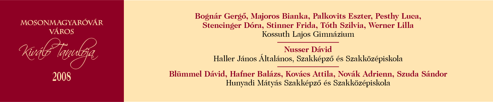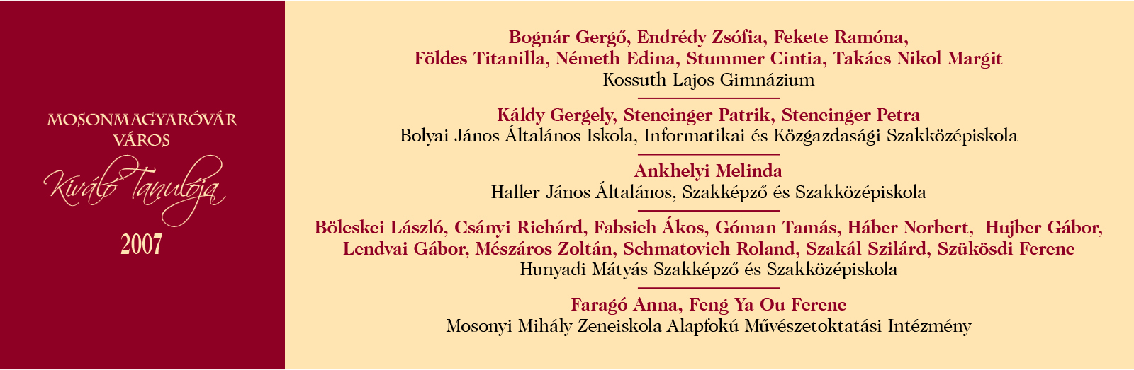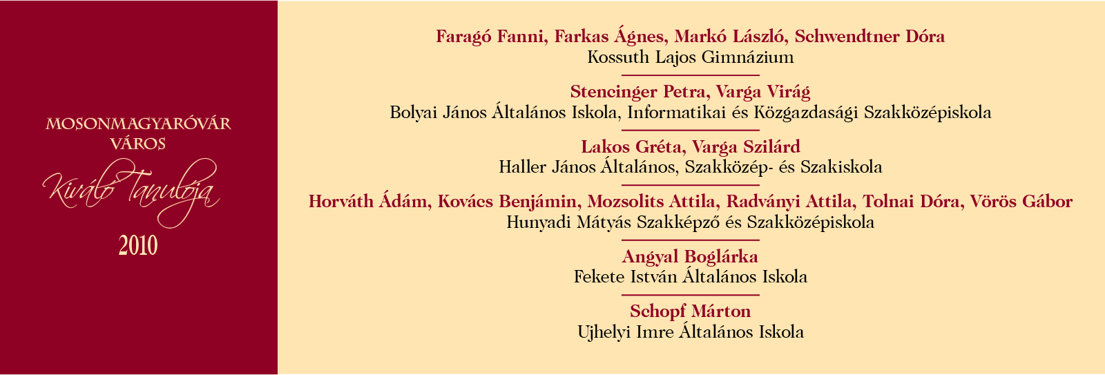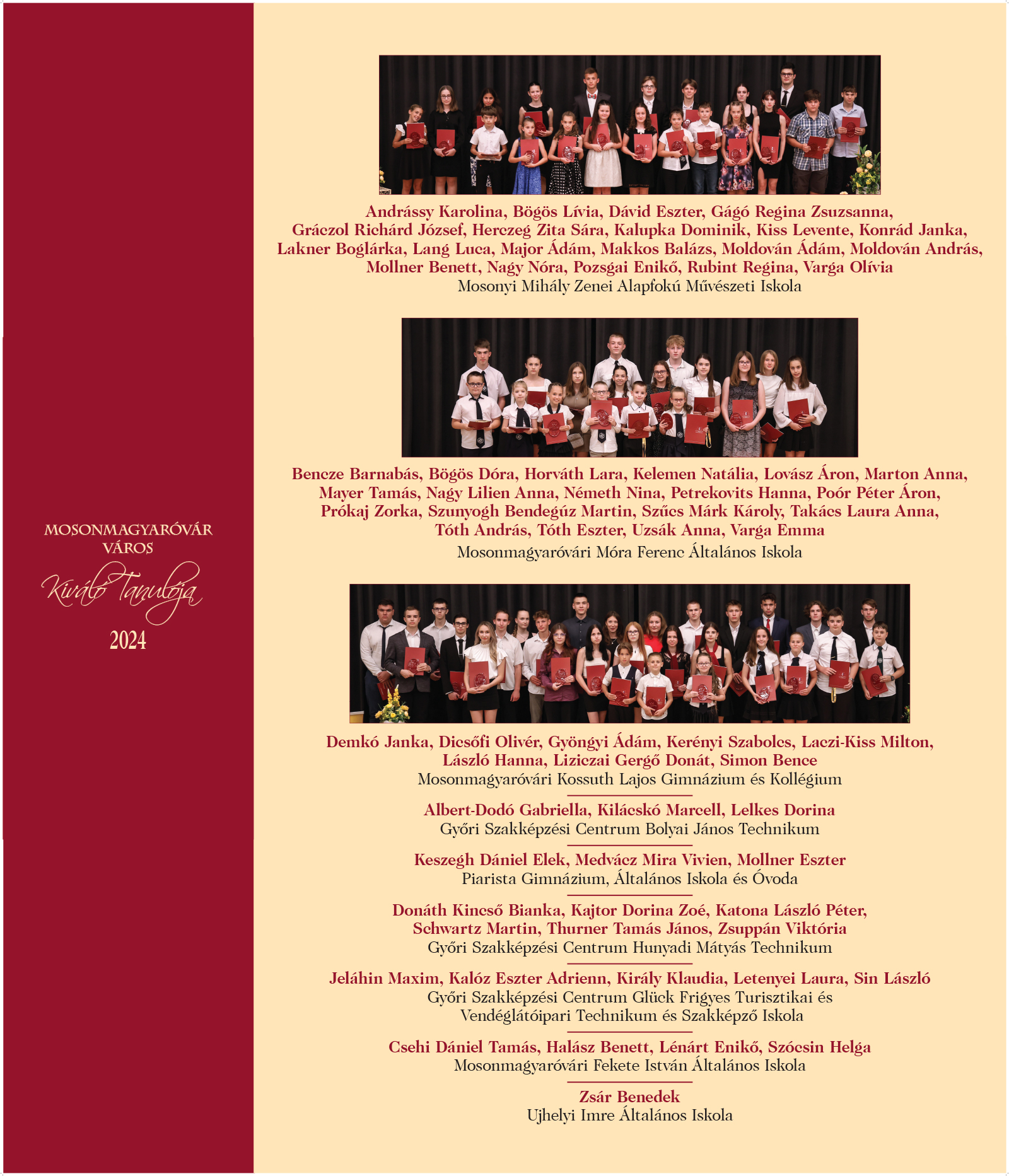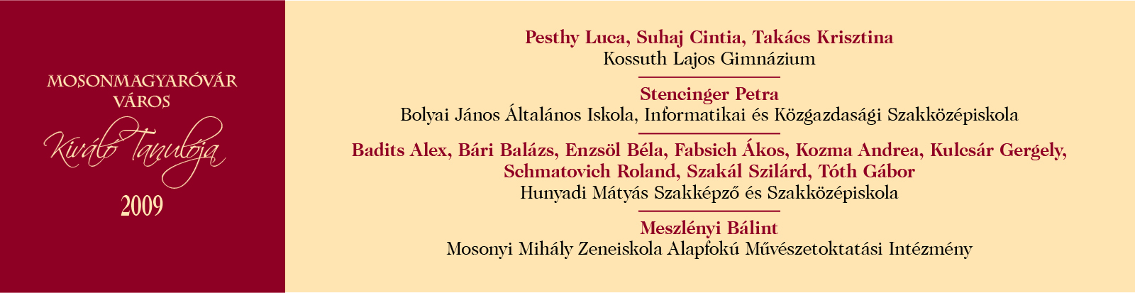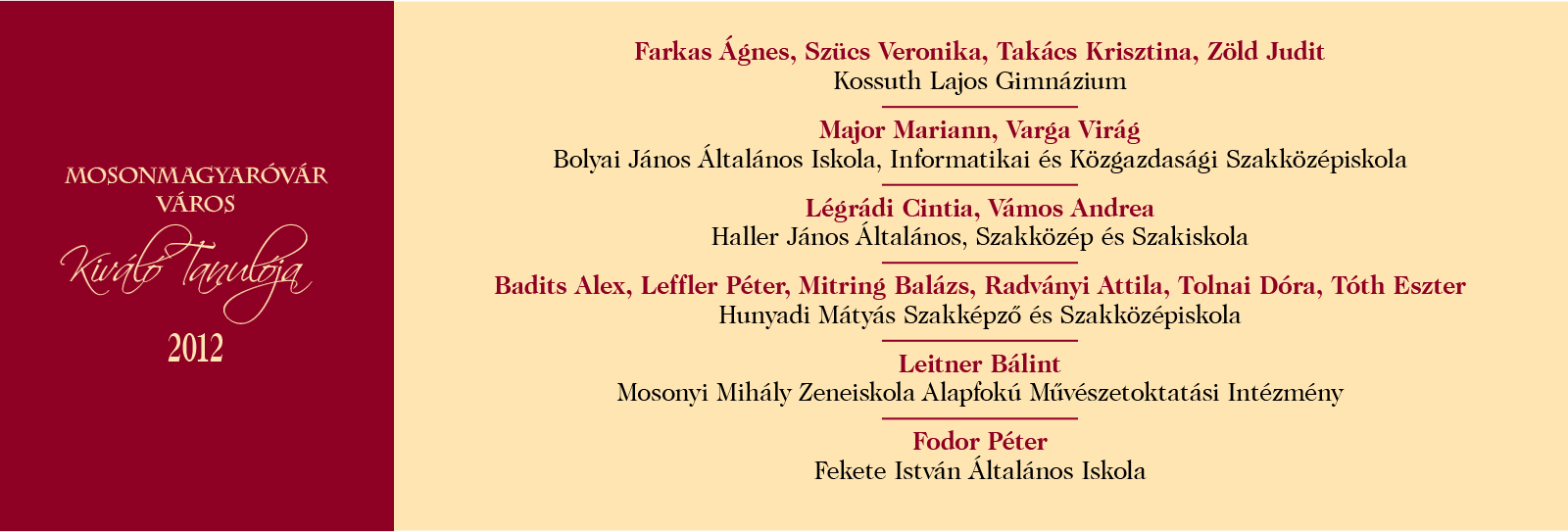 A kiváló tanulmányi, művészi többletteljesítményével iskolája és városunk hírnevét öregbítő mosonmagyaróvári iskolába járó tanulók elismerése.