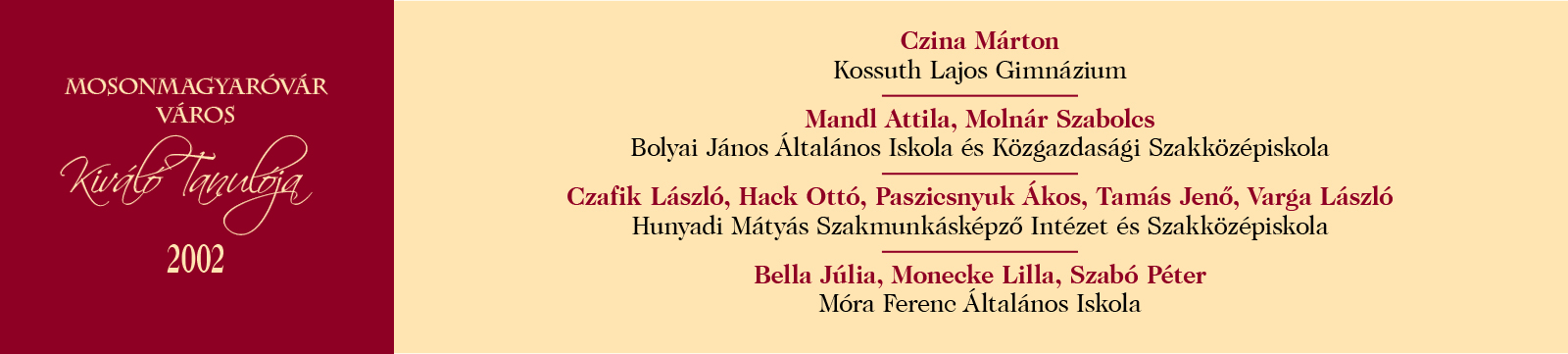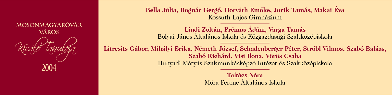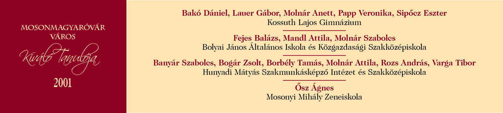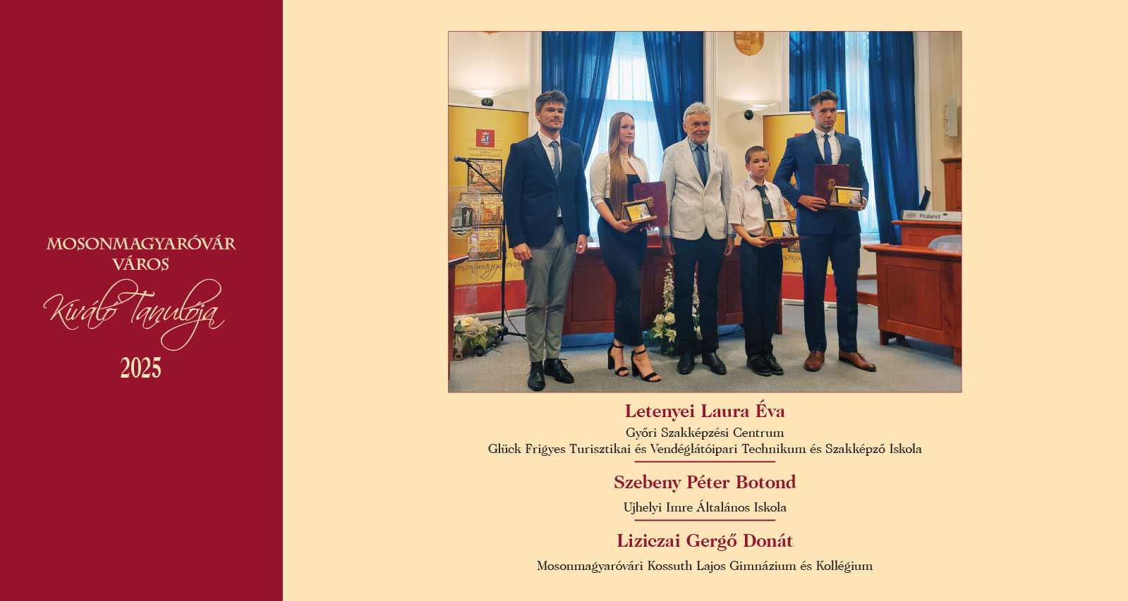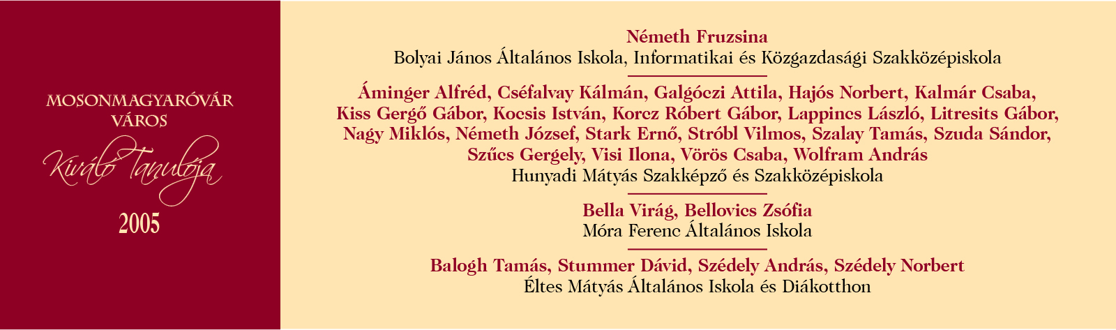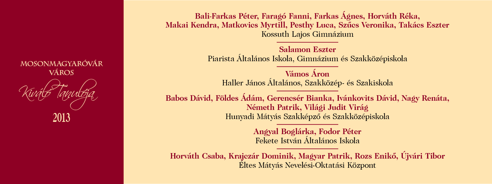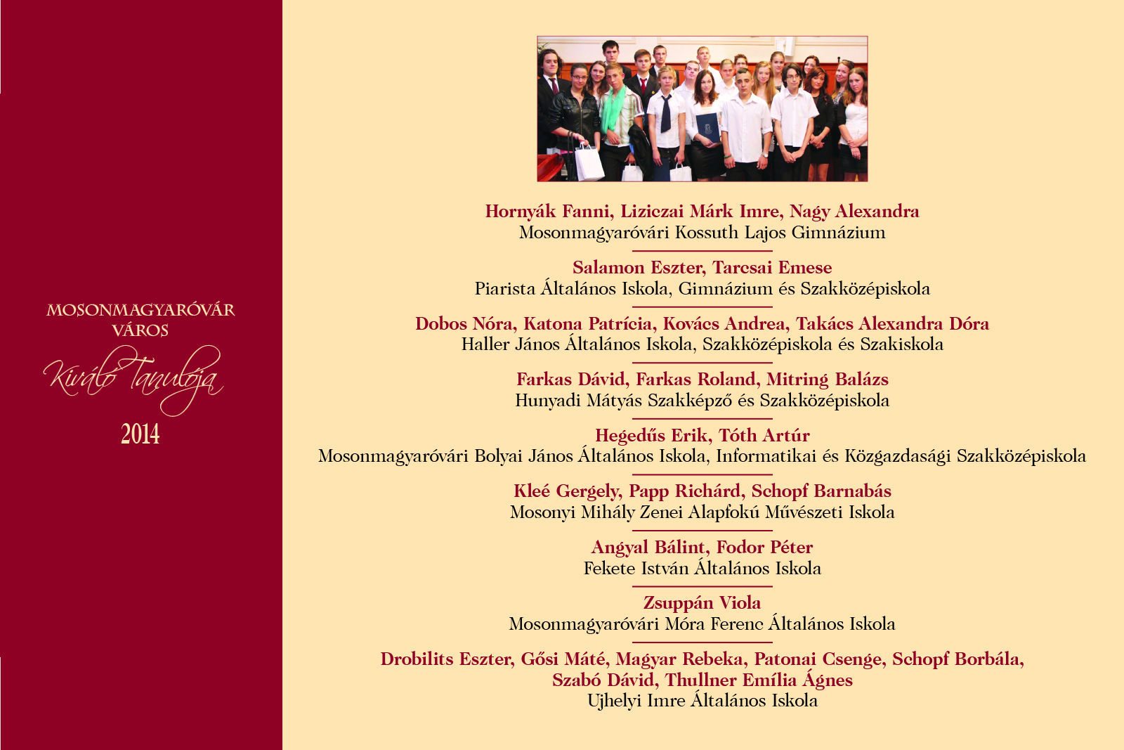 A kiváló tanulmányi, művészi többletteljesítményével iskolája és városunk hírnevét öregbítő mosonmagyaróvári iskolába járó tanulók elismerése.