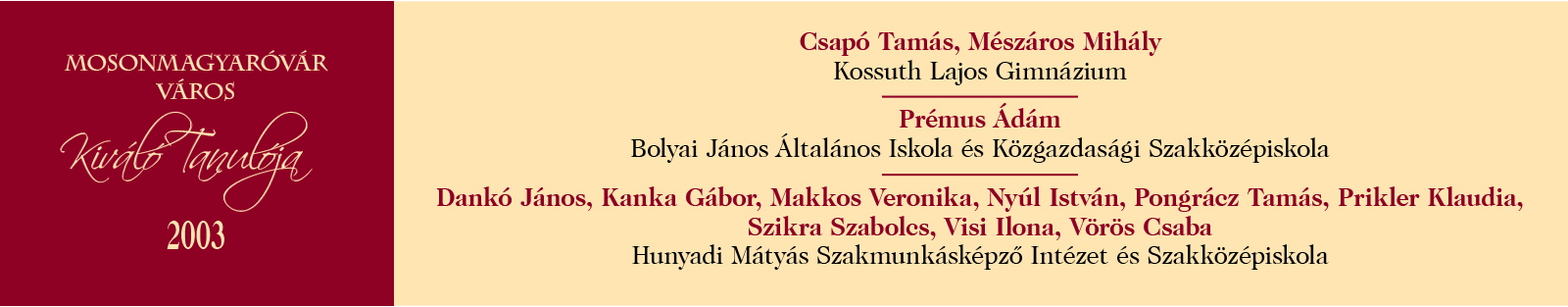 MOSONMAGYARÓVÁR VÁROS KIVÁLÓ TANULÓJA