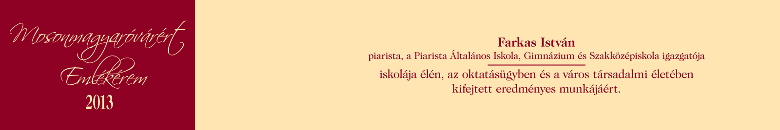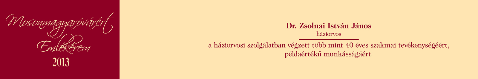 Városi elismerések / Mosonmagyaróvárért Emlékérem
