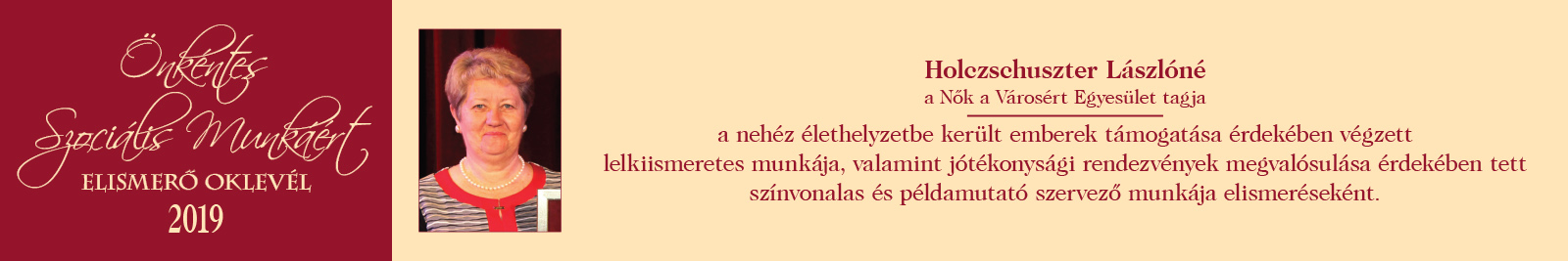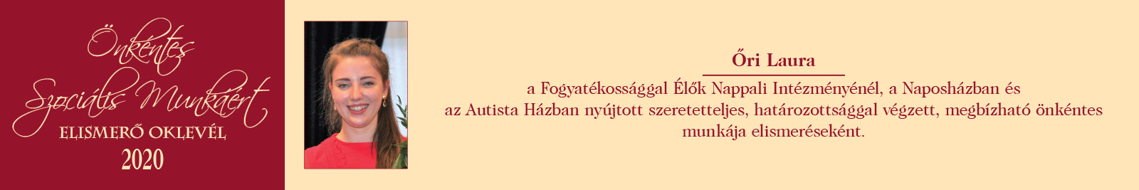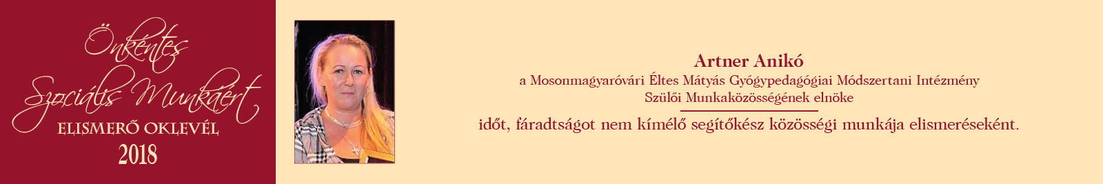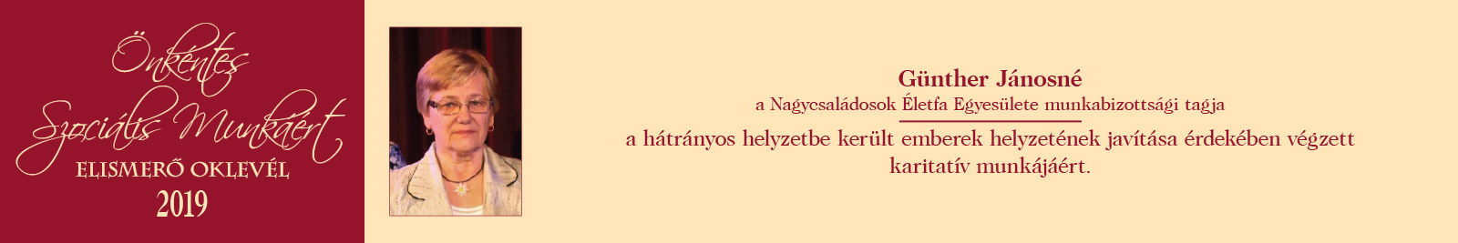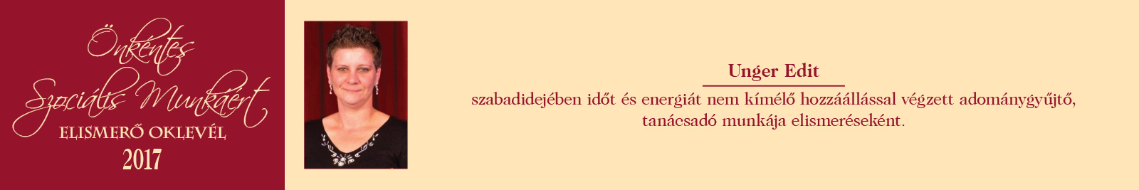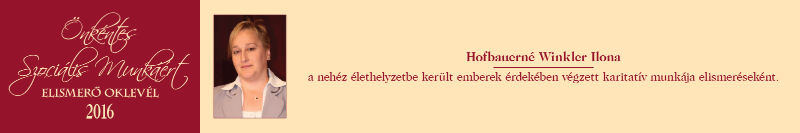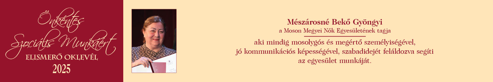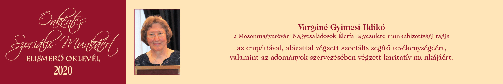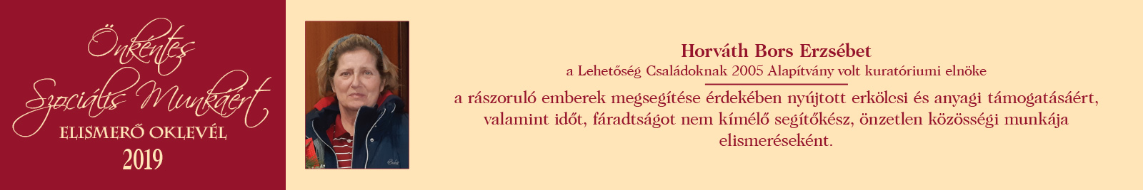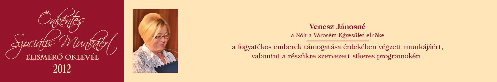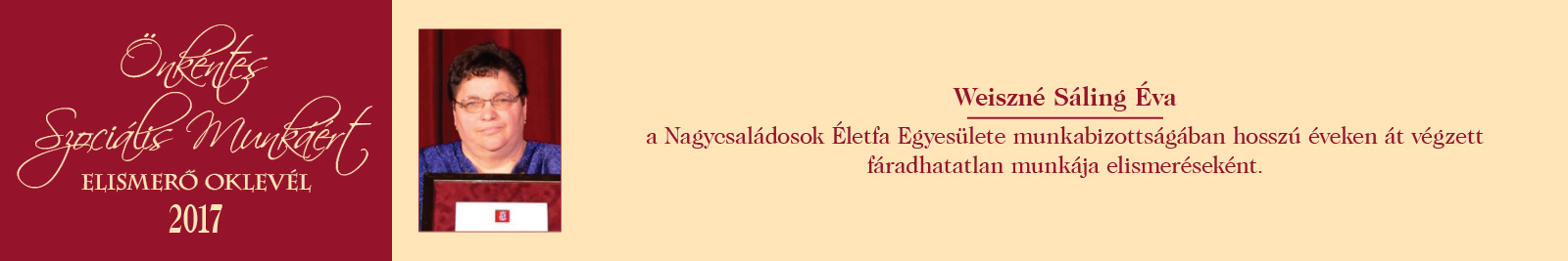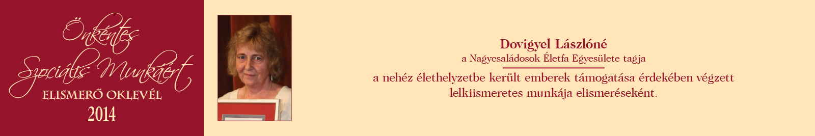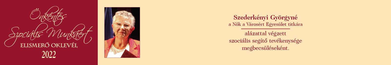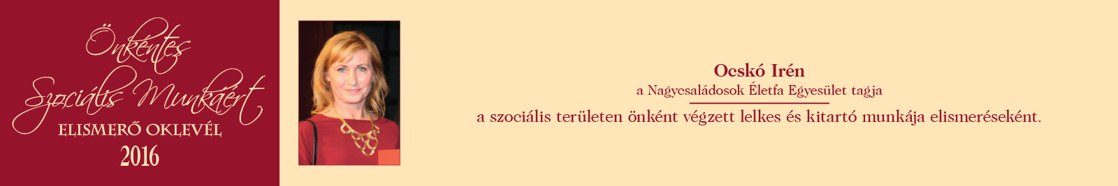 ÖNKÉNTES SZOCIÁLIS MUNKÁÉRT ELISMERŐ OKLEVÉL