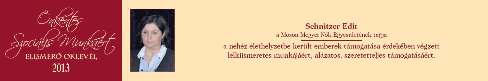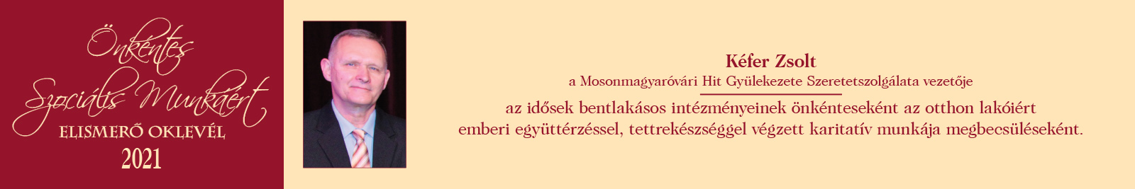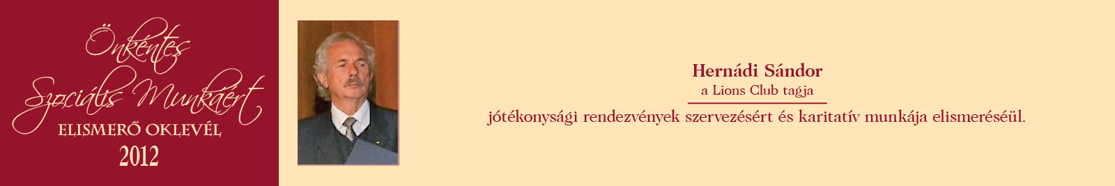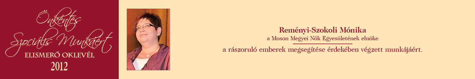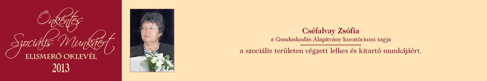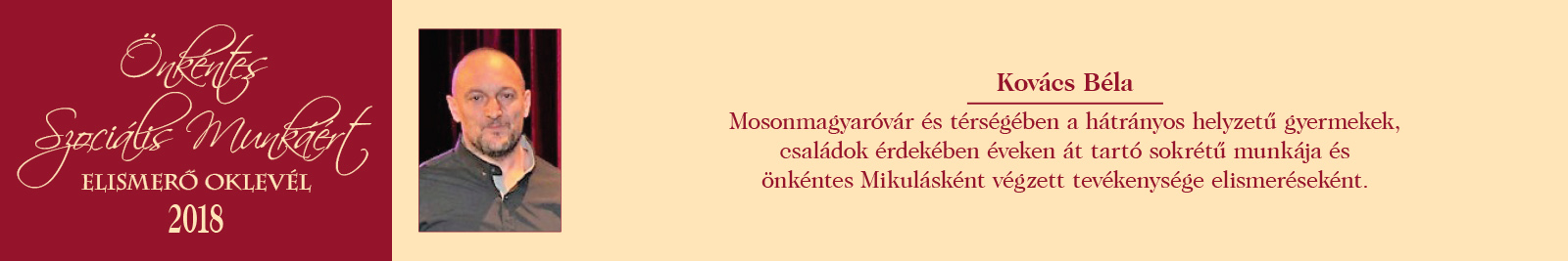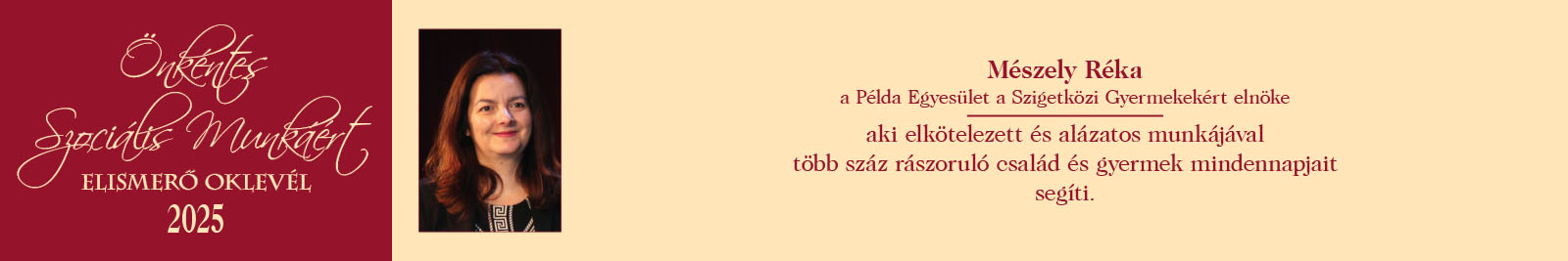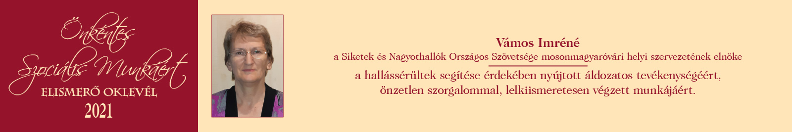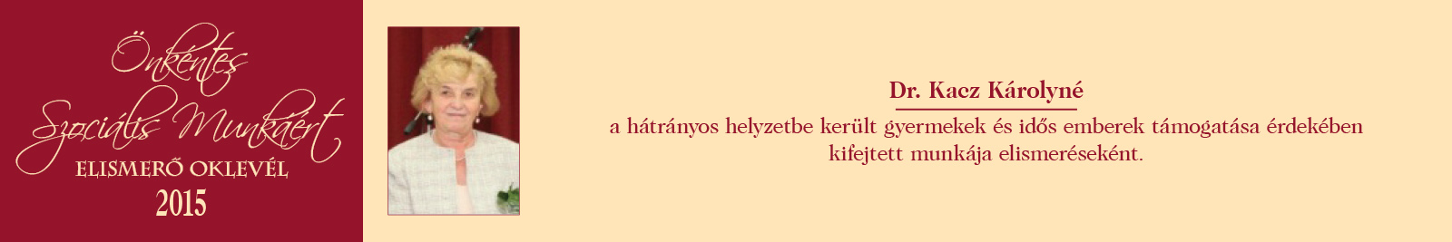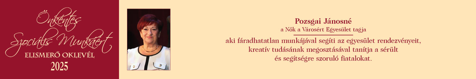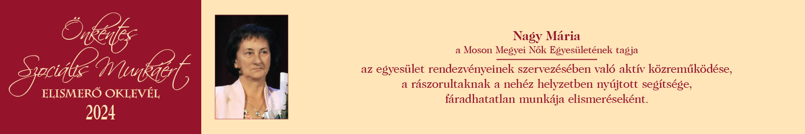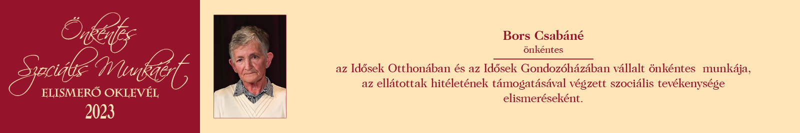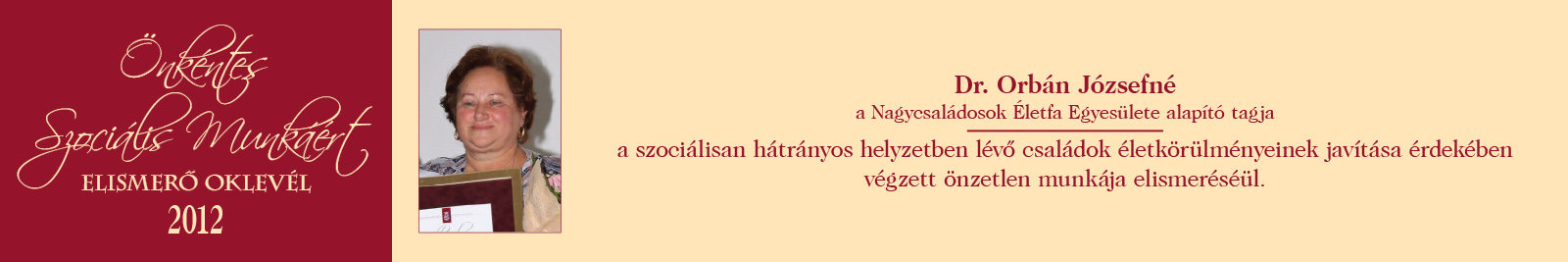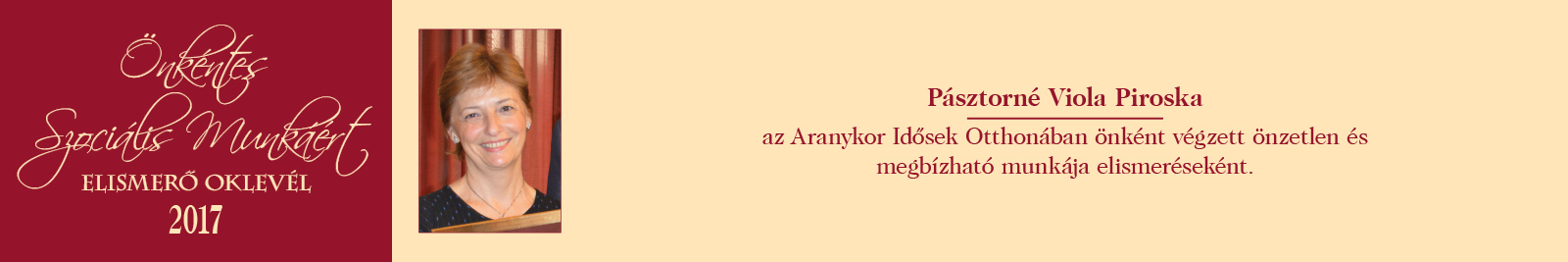 ÖNKÉNTES SZOCIÁLIS MUNKÁÉRT ELISMERŐ OKLEVÉL