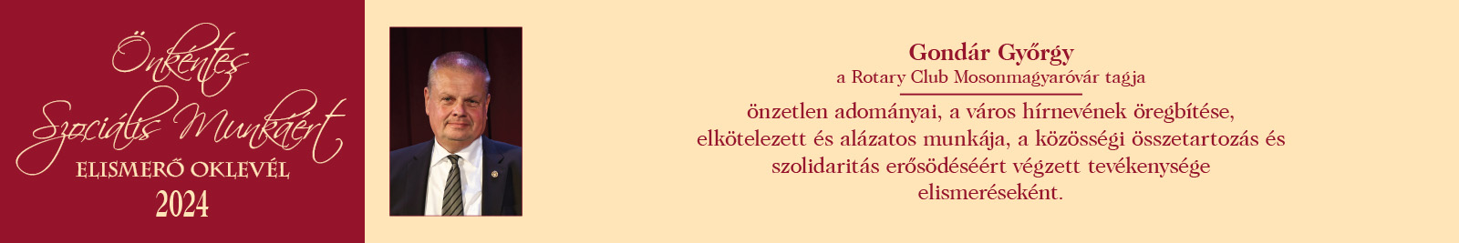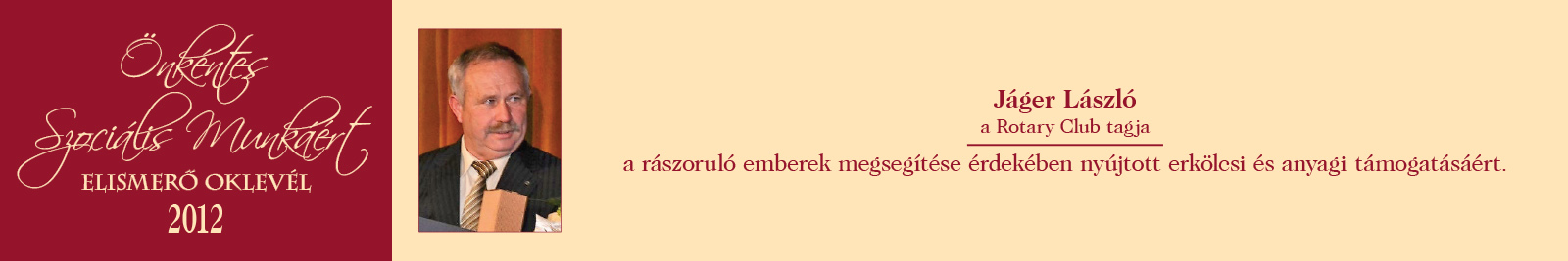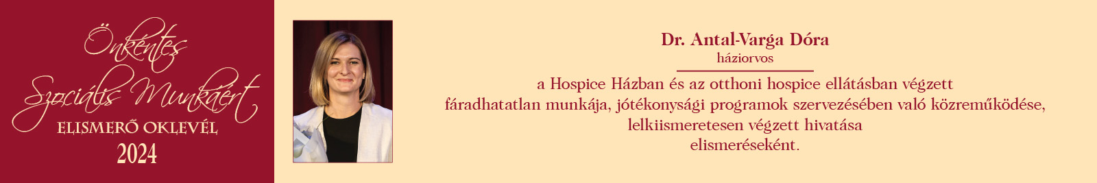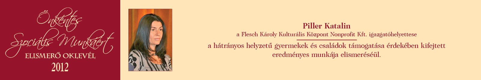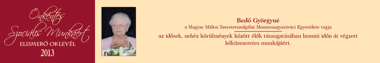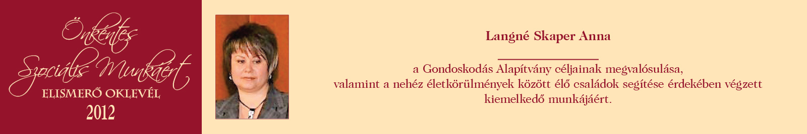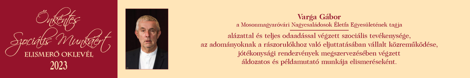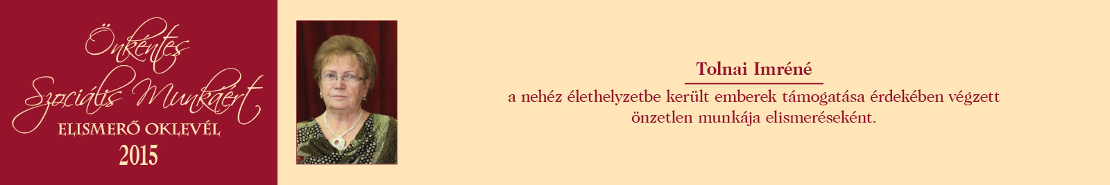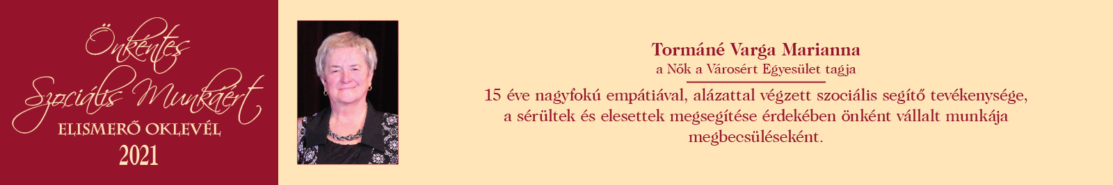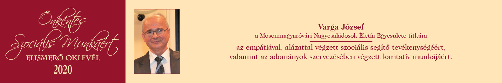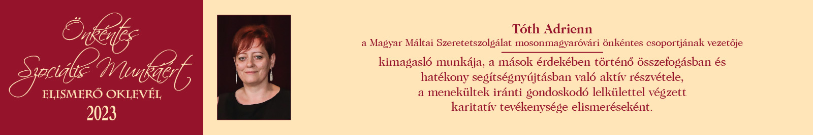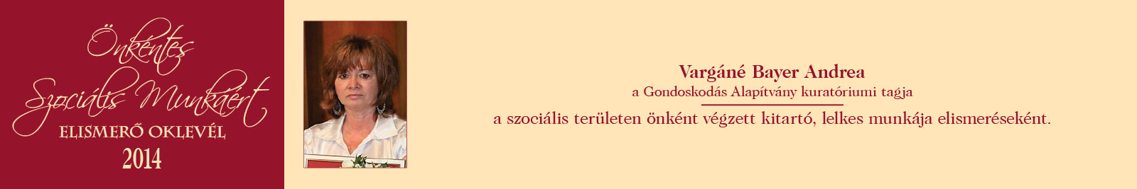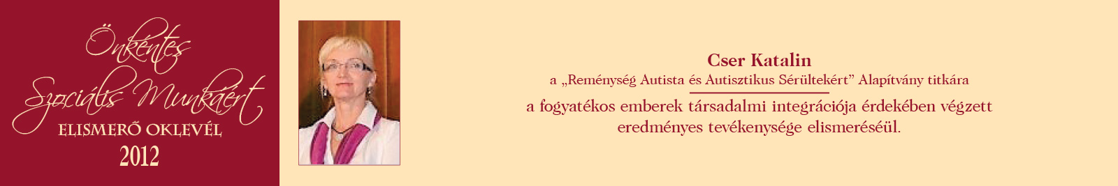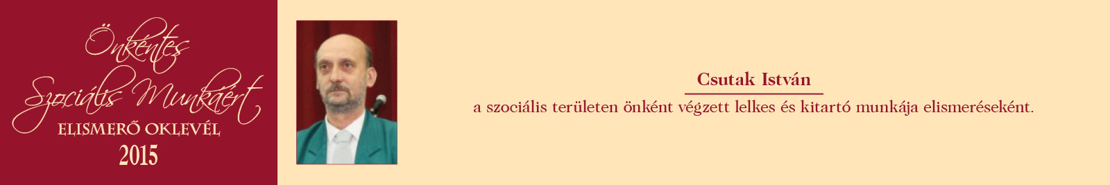 ÖNKÉNTES SZOCIÁLIS MUNKÁÉRT ELISMERŐ OKLEVÉL